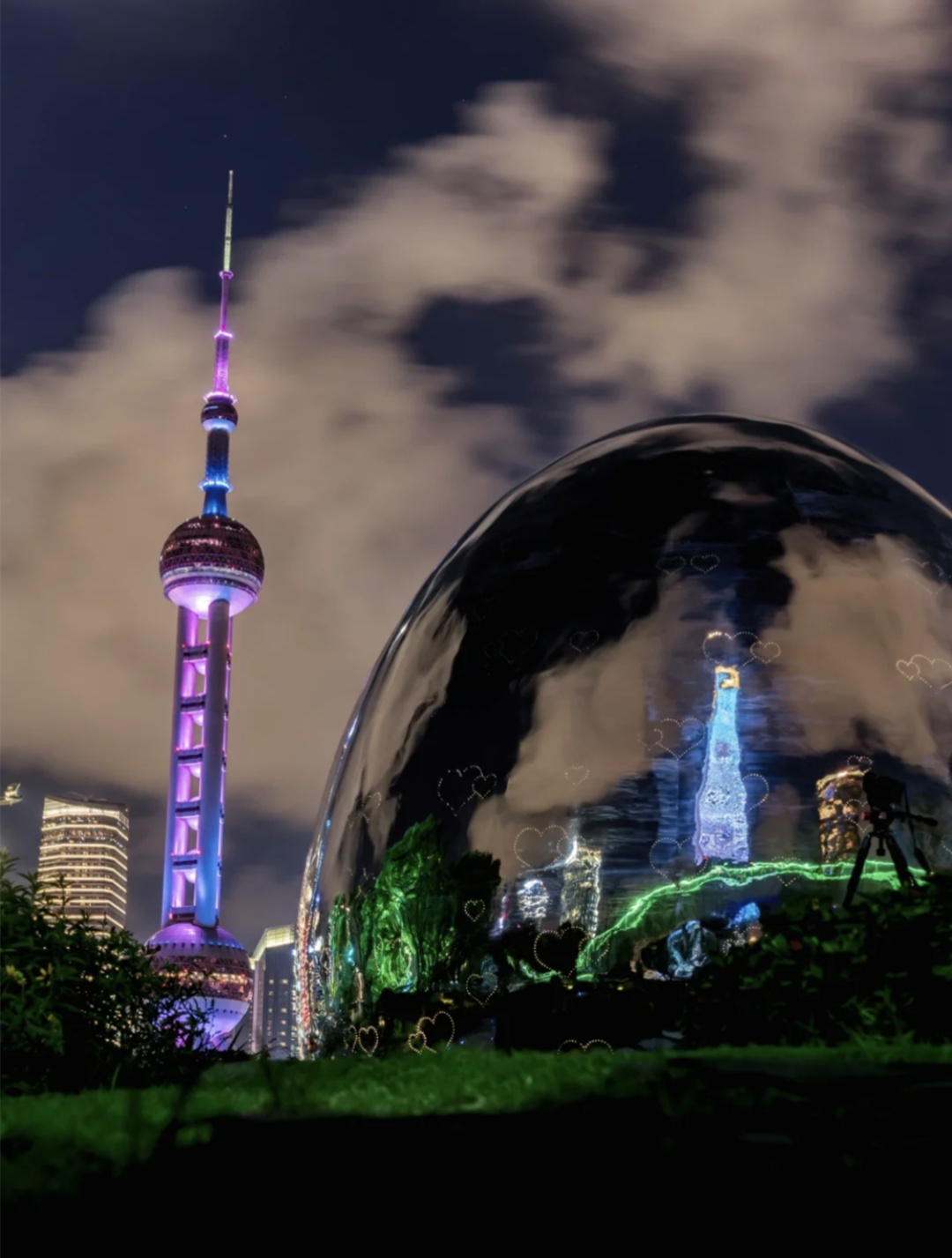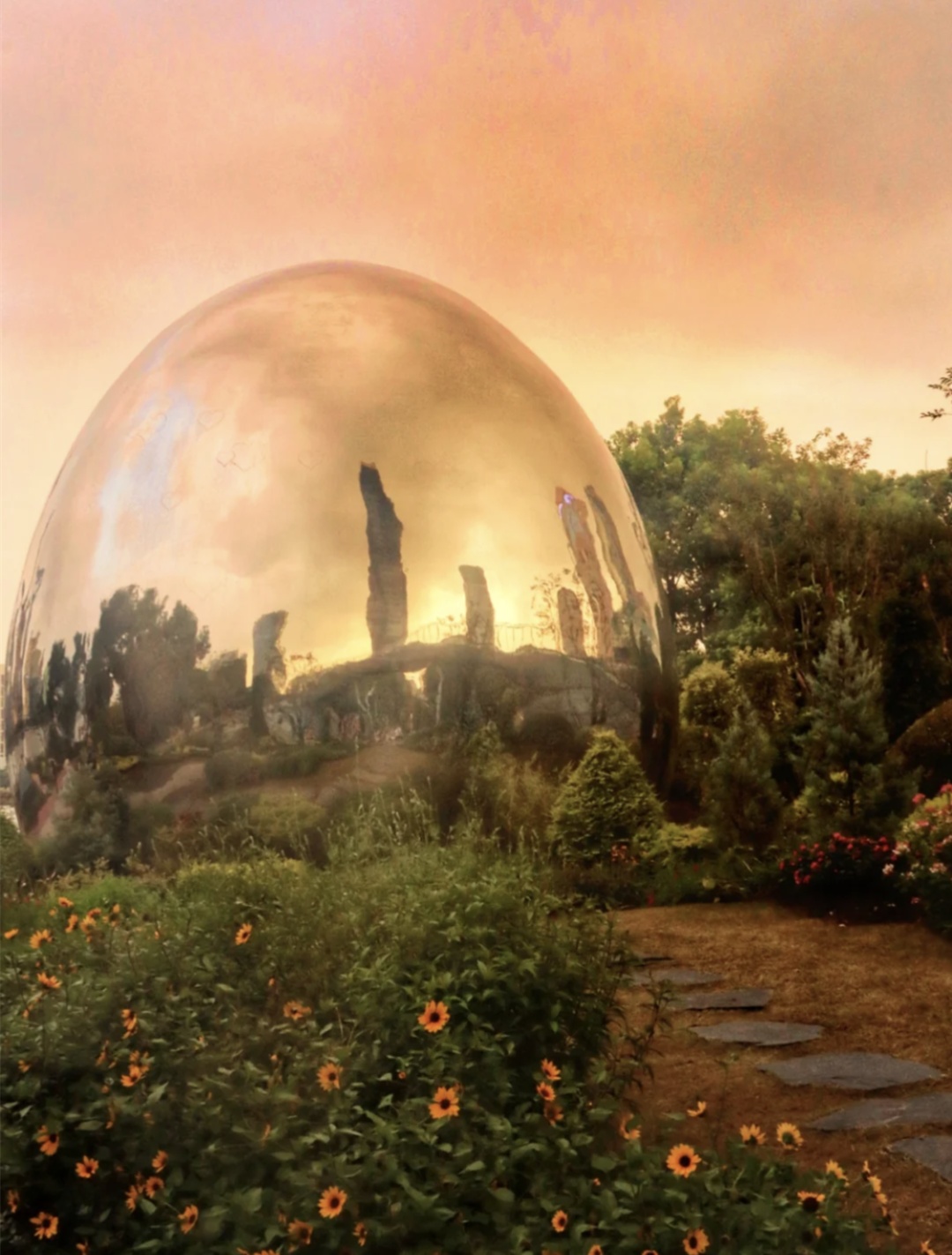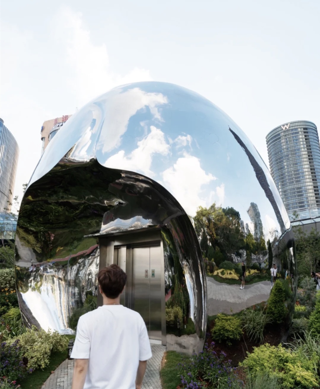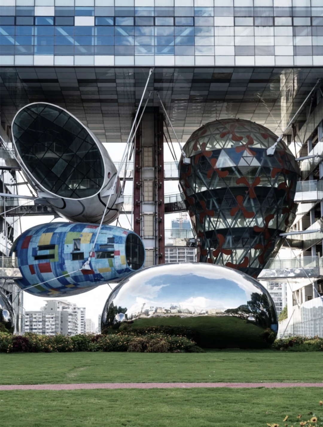 这几颗水滴建筑因为是镜面,