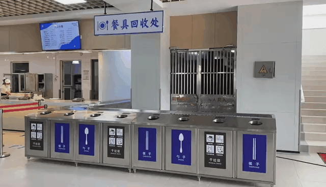 流水线式的餐具回收处