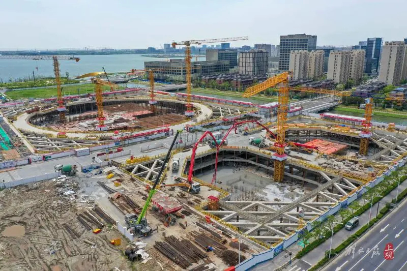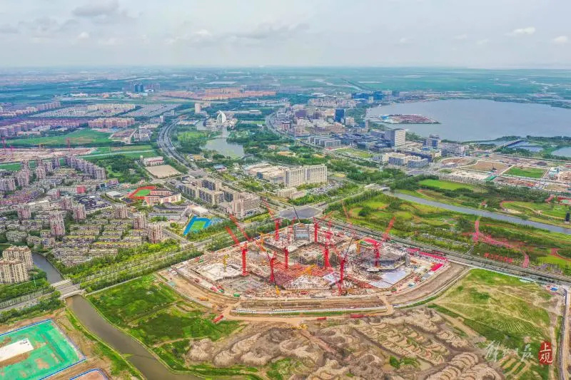 其实,临港新片区热火朝天的大项目不止有“冰雪之星”,位于海港大道、环湖南三路路口的世界顶尖科学家论坛会议中心项目,包含世界顶尖科学家论坛会议中心综合体及配套的剧院、图书馆、科学展示馆、酒店,用地面积8.62万平方米,总建筑面积22.38万平方米。