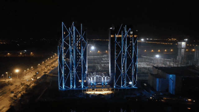 目前,水上乐园和室内滑雪场正处于结构施工阶段,其中室内滑雪场已正式启动屋盖网架提升作业。