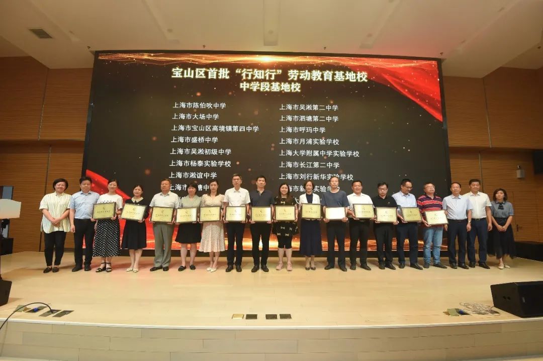 上海市宝山区罗泾镇农委,上海市宝山区泗塘街道,上海市宝山区职业技术学校,尊木汇上海木文化博物馆,上海陶瓷科技艺术馆,上海永大菌业有限公司,世达工具(上海有限公司),宣城市华佗岭中药材开发有限公司等八家单位成为宝山区首批“行知行”劳动教育校外实践基地。