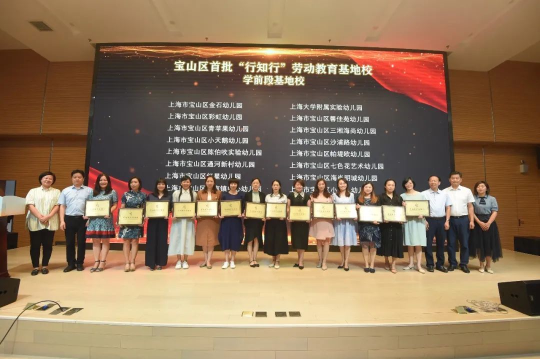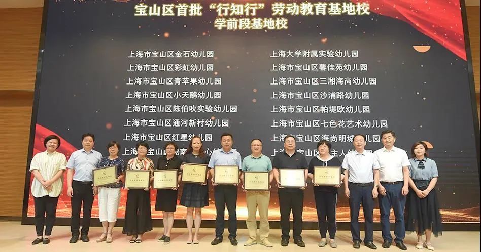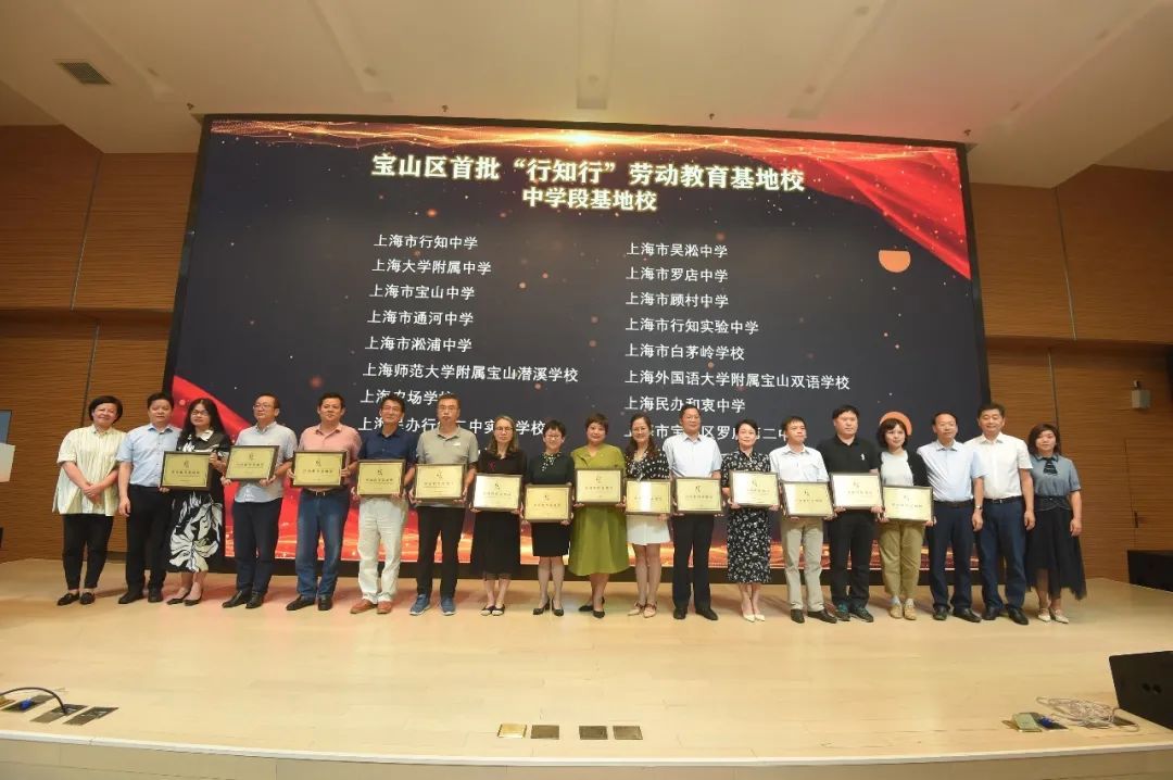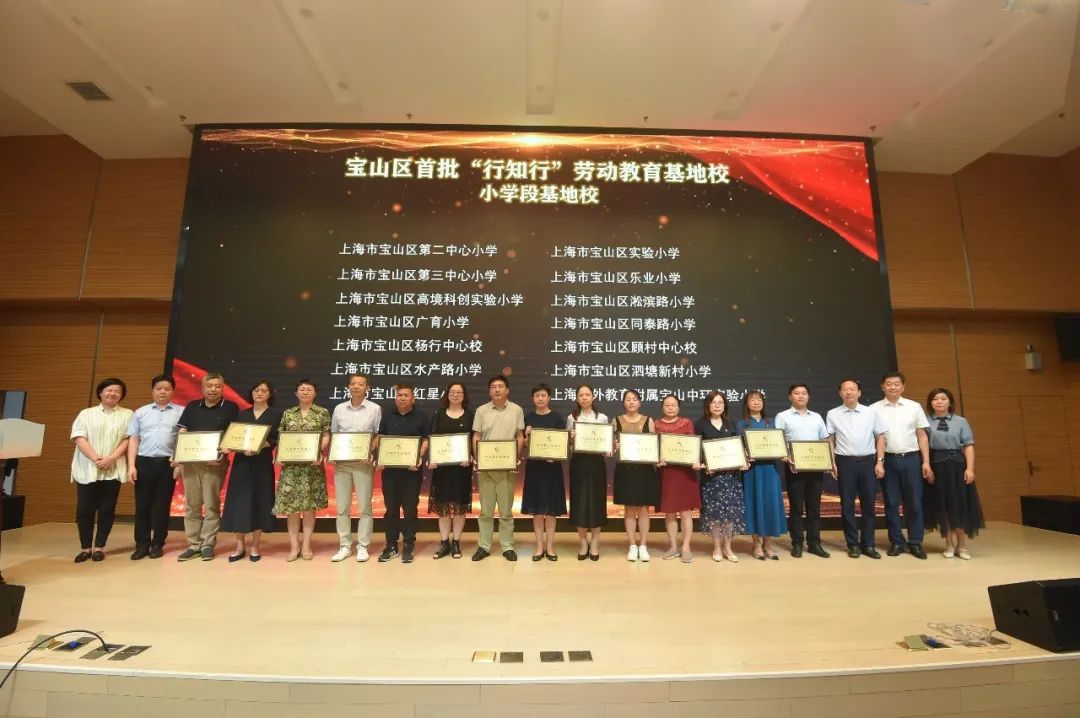 推进会上,上海市行知中学等37所中学,宝山区第二中心小学等14所小学,宝山区金石幼儿园等16所幼儿园,一共67所中小学、幼儿园授牌成为宝山区首批“行知行”劳动教育基地校。