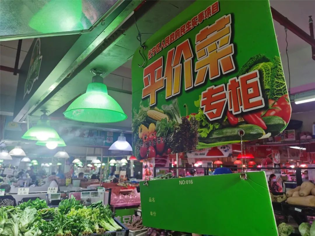 为让广大群众都能在家门口买到平价新鲜的蔬菜,长宁区在已有22家平价蔬菜摊位的基础上,在5家民营标准化菜市场内增设了平价蔬菜摊位。摊位每天提供不少于5个单品的当季常规蔬菜,价格低于菜市场内其他蔬菜摊位同类产品价格30%以上。