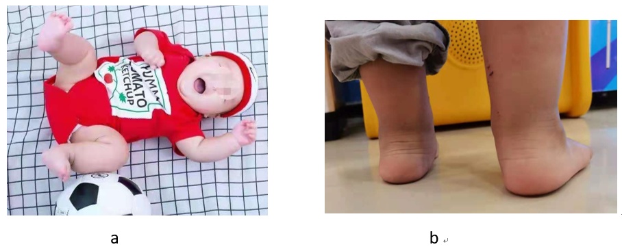 图3:a 4个月婴儿足弓未发育 /b 2岁孩子足弓尚无发育