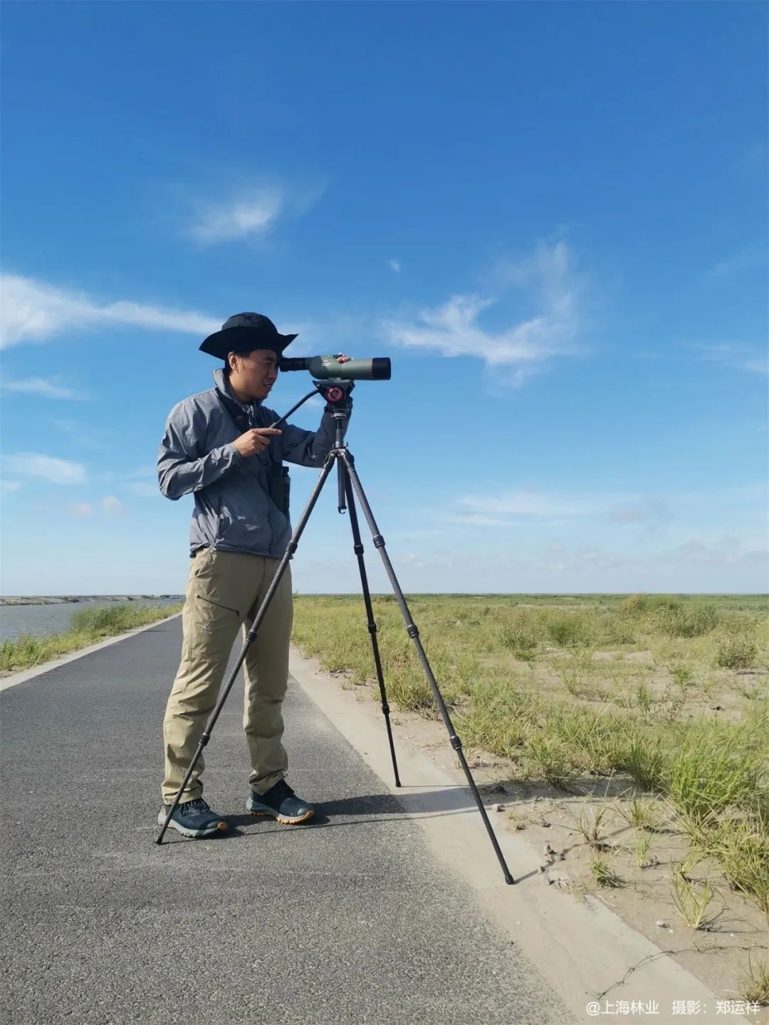 近日,在横沙东滩鸟类监测调查人员