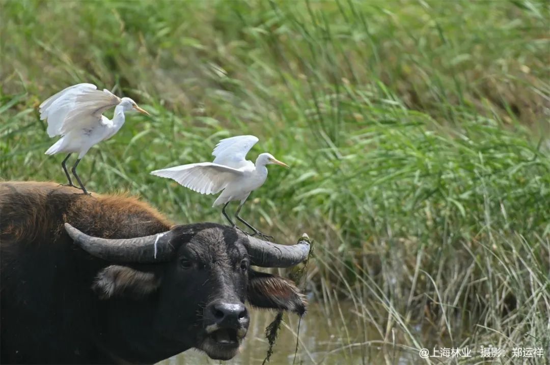 站在牛背上的牛背鹭,是上海常见的夏候鸟之一