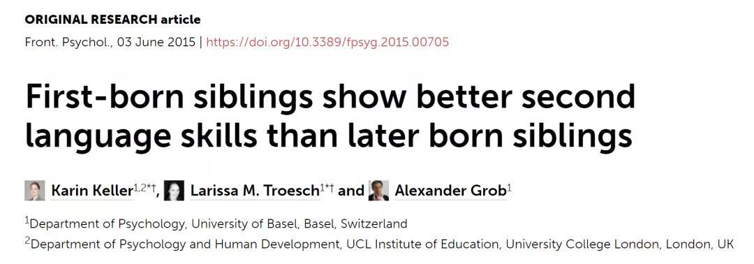 另有研究发现,在学习第二语言技能方面,老大比弟弟妹妹要更出色。