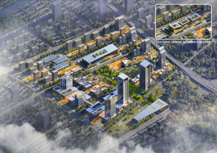 据了解,本次概念方案设计重点为核心区中西部地区,包括6幅商办地块和1幅城市绿地,用地面积18.37公顷,建筑面积约60万平方米。7幅地块是中央活动区,包含西南角的轨交换乘节点和中央区域的绿心节点。轨交换乘节点是已建6号线高青路站和规划的26号线的双线换乘,将成为区域内TOD枢纽;中央区域绿心节点是新杨思中环绿链的核心,也是区域内商业商务人群游憩场所和区域内人流集散中心,将与周边建筑空间多维互动,营造宜人的活动体验。