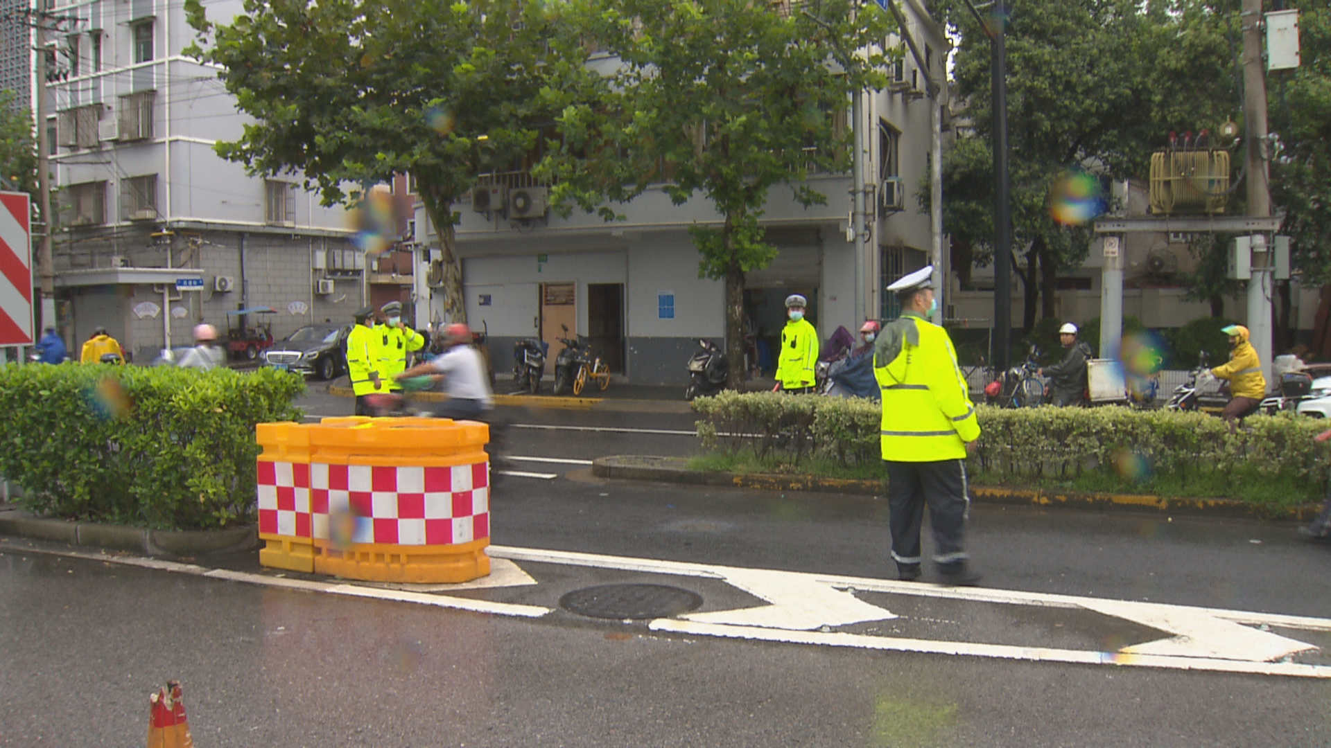 台风“灿都”来势汹汹,黄浦江轮渡今晨停航,黄浦交警在复兴路隧道浦西入口,采取单车道禁止机动车通行的临时交通管制措施,由警车开道,分批护送非机动车从隧道过江。