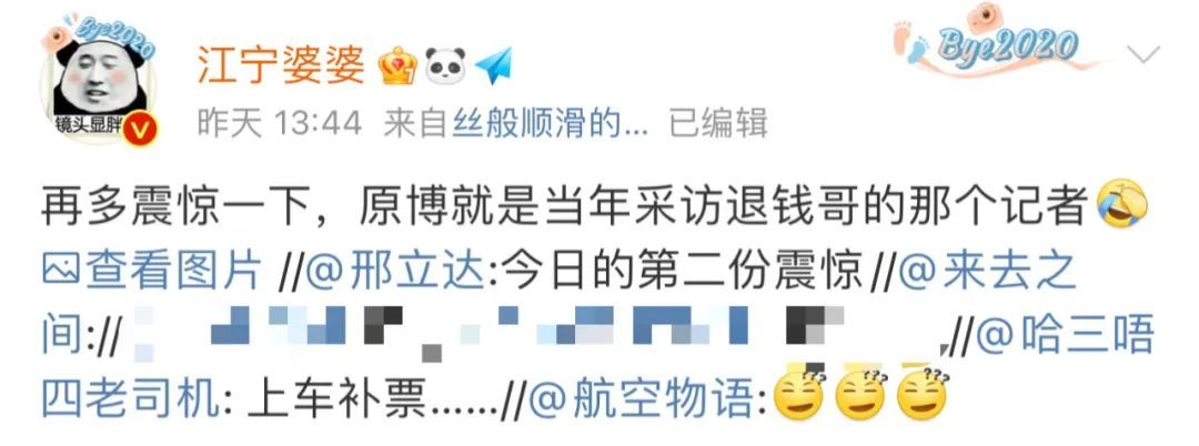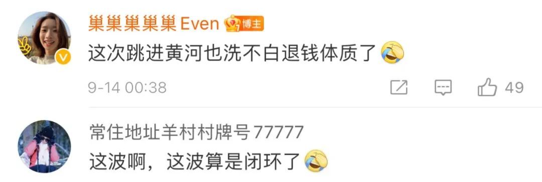 因此她的吐槽微博,也获得了不少微博大V的转发,大家纷纷感慨“退钱人设不倒”“世界线收束了”。