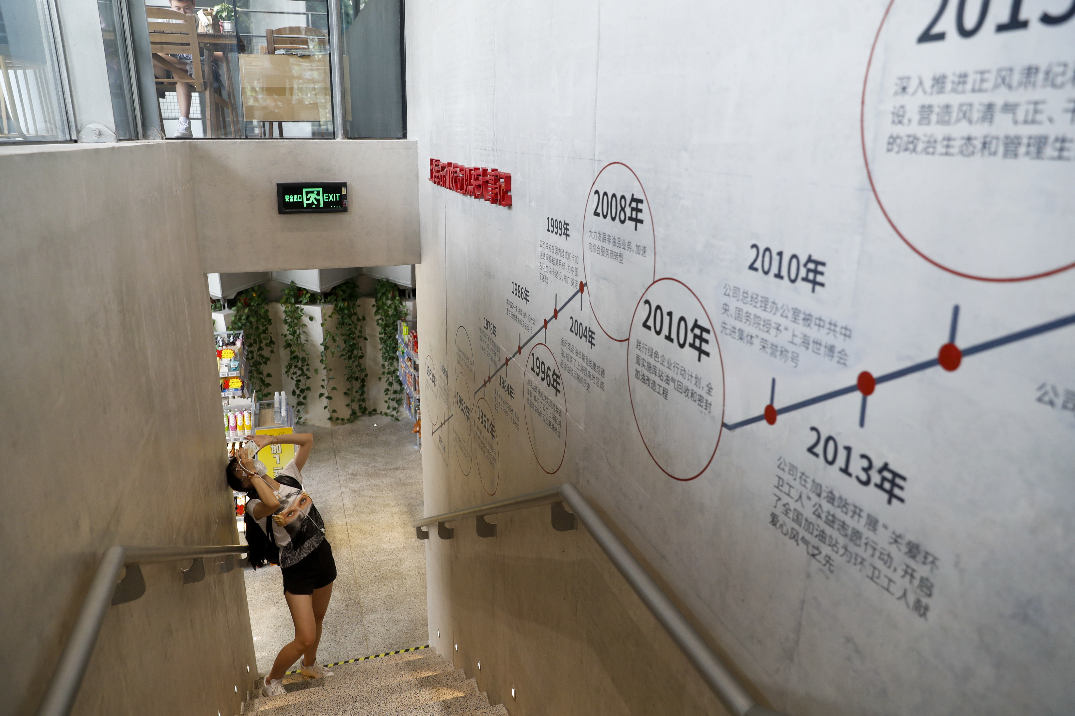 为何会在加油站里开咖啡馆?参与到整个苏州河黄浦段工程的同济原作建筑师王绪男认为,作为一座有着悠久历史的加油站,不仅要兼顾历史传承,又要展示现代化特色。这也是为何在加油站的楼梯两侧有一面大事记墙绘的原因所在;与此同时,为了重塑加油站空间,在二楼开设了具有现代化气息的露天精品咖啡馆,使历史与现代完美融合。很好利用空间的同时,提升了整个加油站景观,并延展了其功能性。