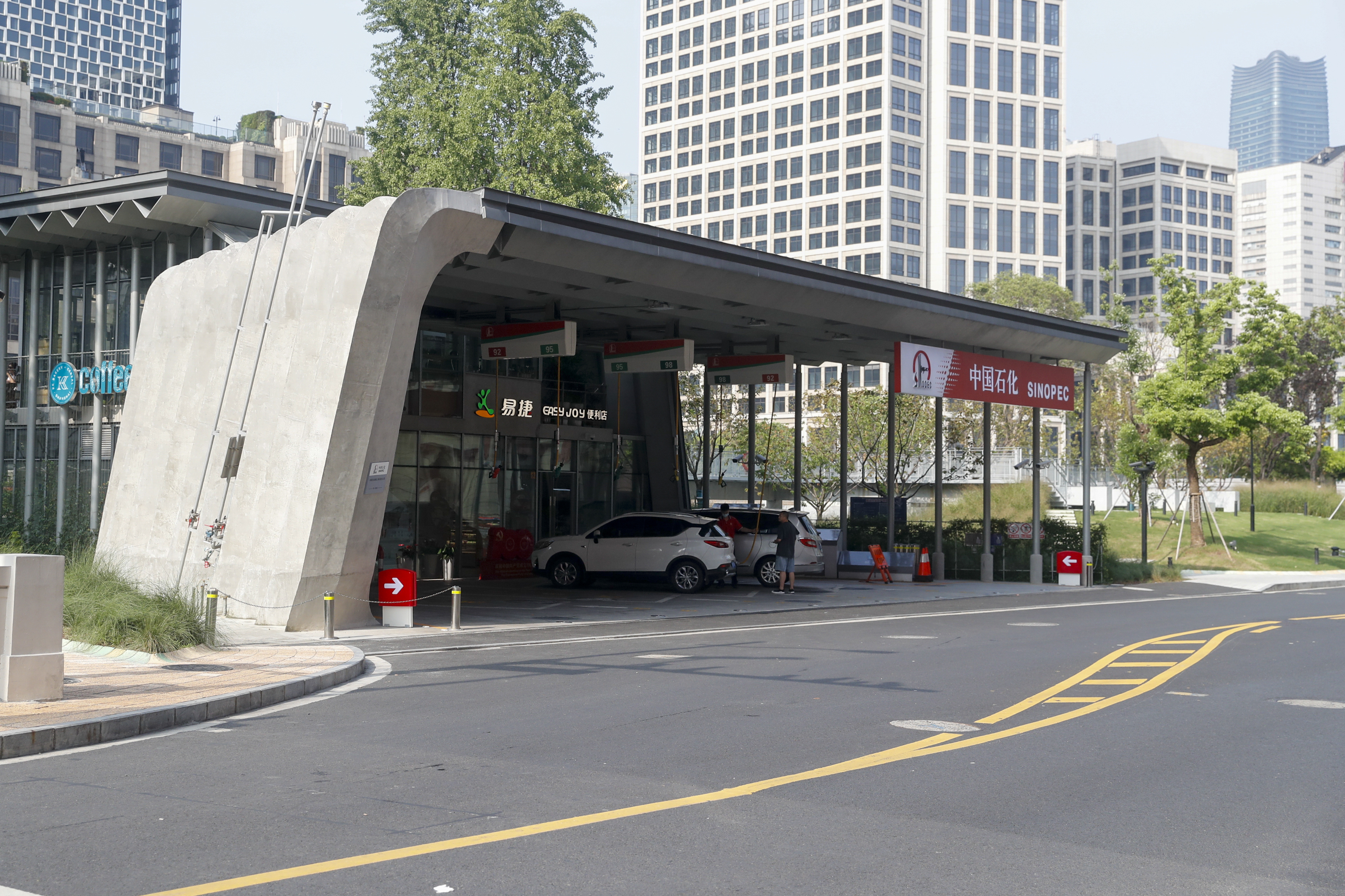 与一般加油站不同,每当有汽车驶入被称为“最美加油站”的中石化一号加油站,车主们都会惊叹这里与众不同的悬挂式加油枪。