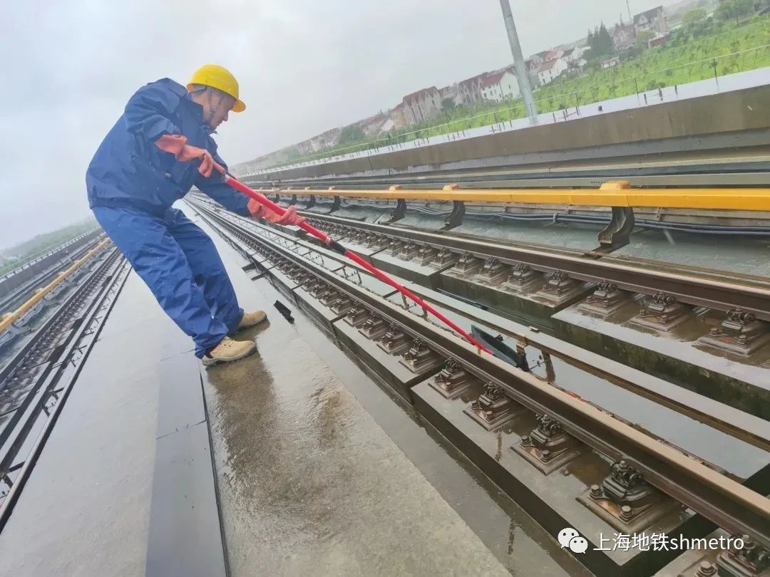 维保工务专业针对“灿都”将值守力量分布在了各个基地,根据各地区雨量情况重点布控防汛力量,确保发生突发事件的情况下便能够及时响应。同时,工务专业值守人员24小时不间断监控反馈各地区雨量以及地铁设备状态,实时掌握隧道洞口的积水情况。为保障地面、高架线路能够顺利恢复运营,工务人员登乘电客列车进行巡道,随车保驾,及时发现并清理被台风吹入限界的树枝,避免其对列车造成刮伤以及影响列车运行等事件。