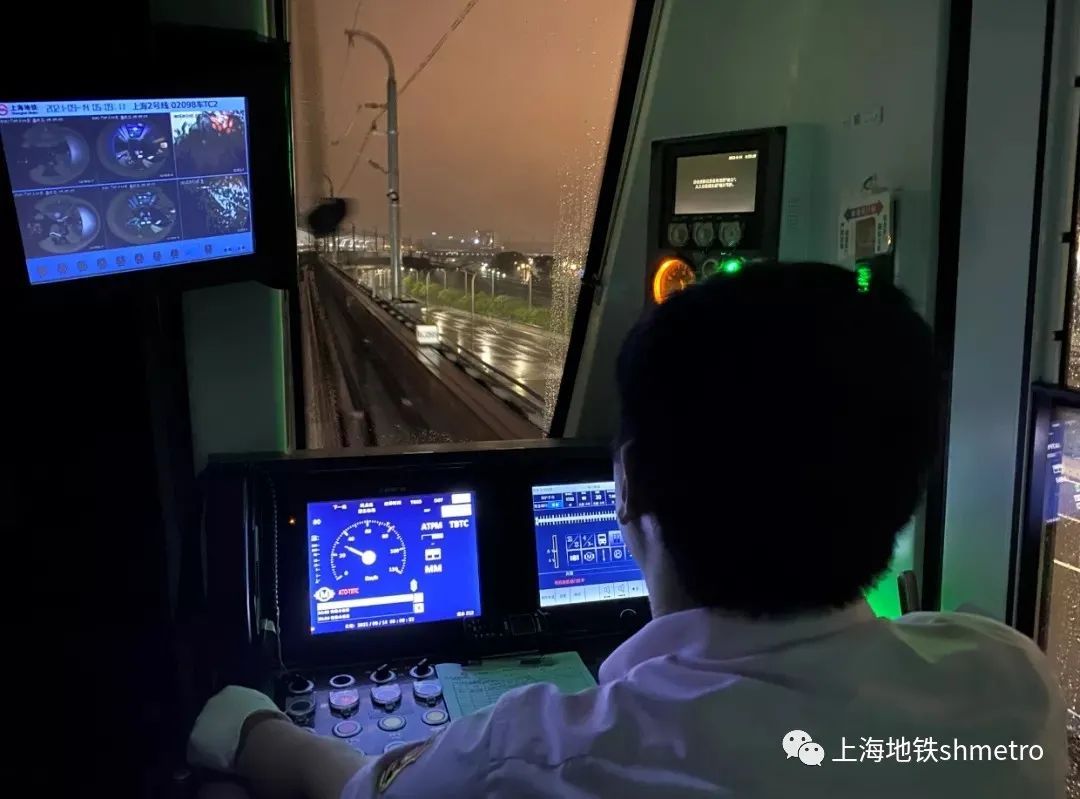 比以往更早,9月14日的凌晨3点半,乘务三组的张昊、李名成、张韵祺和吴伟庆开着2号线巡道车从远东大道车库内缓缓出发。他们4人分别在巡道车两头司机室,确保双岗值乘,按要求在创新中路站——浦东国际机场站停运区段内以30km/h的速度不间断巡道,只为更精细、更可靠地保障台风下的线路安全。