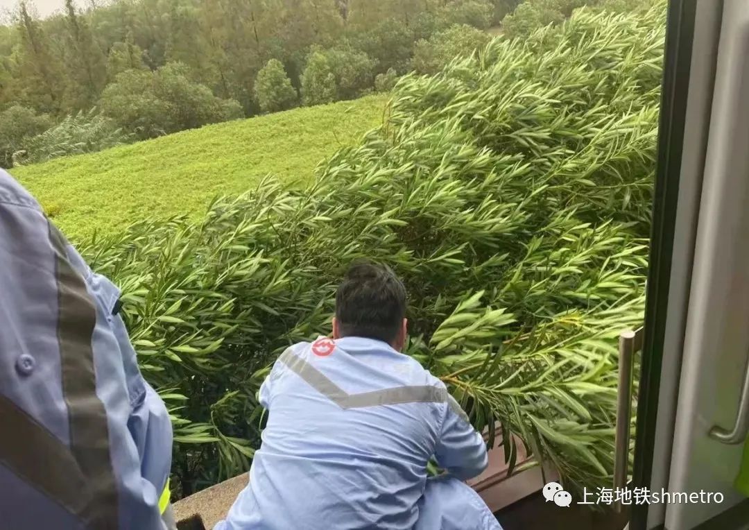 台风期间,浦江线贴出了停运告示,各车站的车站引导员耐心和乘客解释停运事宜。设备检修组重点加固室外设施如监控摄像头、车站外窗、悬挂式显示屏等。对升降电梯和自动扶梯、列车车体密封情况、集电靴状态等进行检查。同时,车站内及时清扫地面积水,重点位置放置沙袋,保证浦江线一旦恢复运营可以马上投入正常运行。