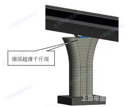 本次施工点分三处不同施工区域。施工单位根据不同地段的墩柱高度、桥下绿化、交通等情况,制定了两种施工操作平台,通过千斤顶将桥梁上部结构顶升1.5厘米,再对支座进行更换。
