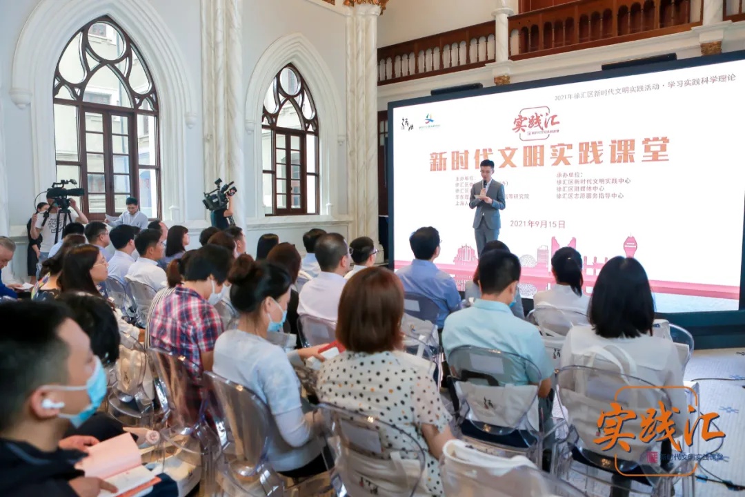 9月15日,2021年徐汇区新时代文明实践活动·学习实践科学理论专场之“实践汇——新时代文明实践课堂”第6期课堂,也是“实践汇”第一季最后一期,在文化厚重的汇展示厅生动开讲。这一特别的课堂由徐汇区委宣传部(文明办)、区地区办联合华东理工大学社会科学高等研究院、上海人民广播电台、徐汇区融媒体中心共同举办,新华网进行现场直播。区委常委、宣传部部长吕晓慧出席课堂活动。