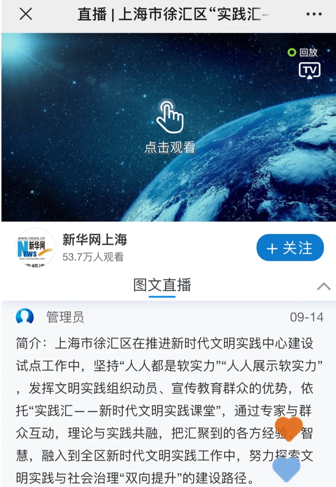 ▲“文明实践在这里·上海”新华网直播