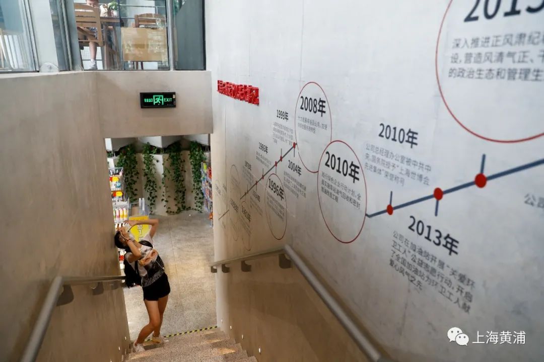 为何会在加油站里开咖啡馆?参与整个苏州河黄浦段工程的同济原作建筑师王绪男认为,作为一座有着悠久历史的加油站,不仅要兼顾历史与传承,又要展示现代化特色。这也是在加油站的楼梯两侧设有一面大事记墙绘的原因所在。