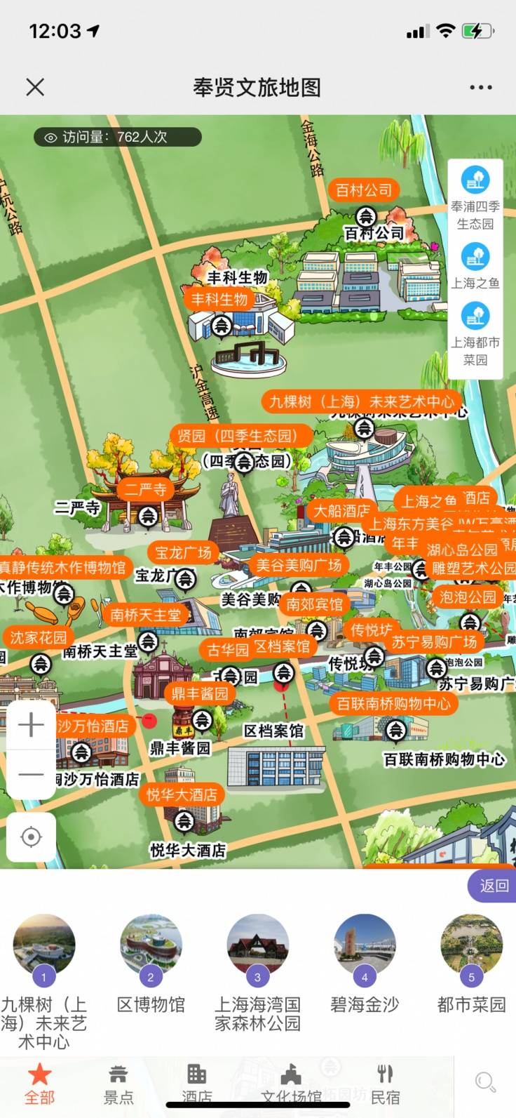 手绘地图现在已经不算新鲜,但你见过会说话、会导航的手绘地图吗?奉贤文旅地图不仅是手绘的小清新地图,更是实用的讲解景点、服务、以及方便导航的智慧导览。