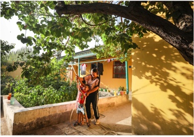 阿热勒乡15村的图尔荪古丽,最近一直利用空闲时间,带着她的两个女儿在自家核桃树下打核桃,准备卖到村核桃收购点,在说到村子这两年的变化时,图尔荪古丽高兴地对小布介绍自家附近漂亮的墙画和院外小景,并兴奋地说起了离家不远的果林,“那里另外种了5亩核桃,还有大片巴旦木也是我们家的。前阵子巴旦木花节时,我们家还来了很多游客,现在花期结束,我们就开始忙着收果子了。”说到这几年村貌焕新带来的收入变化,图尔荪古丽笑着说:“挺宽裕的。”