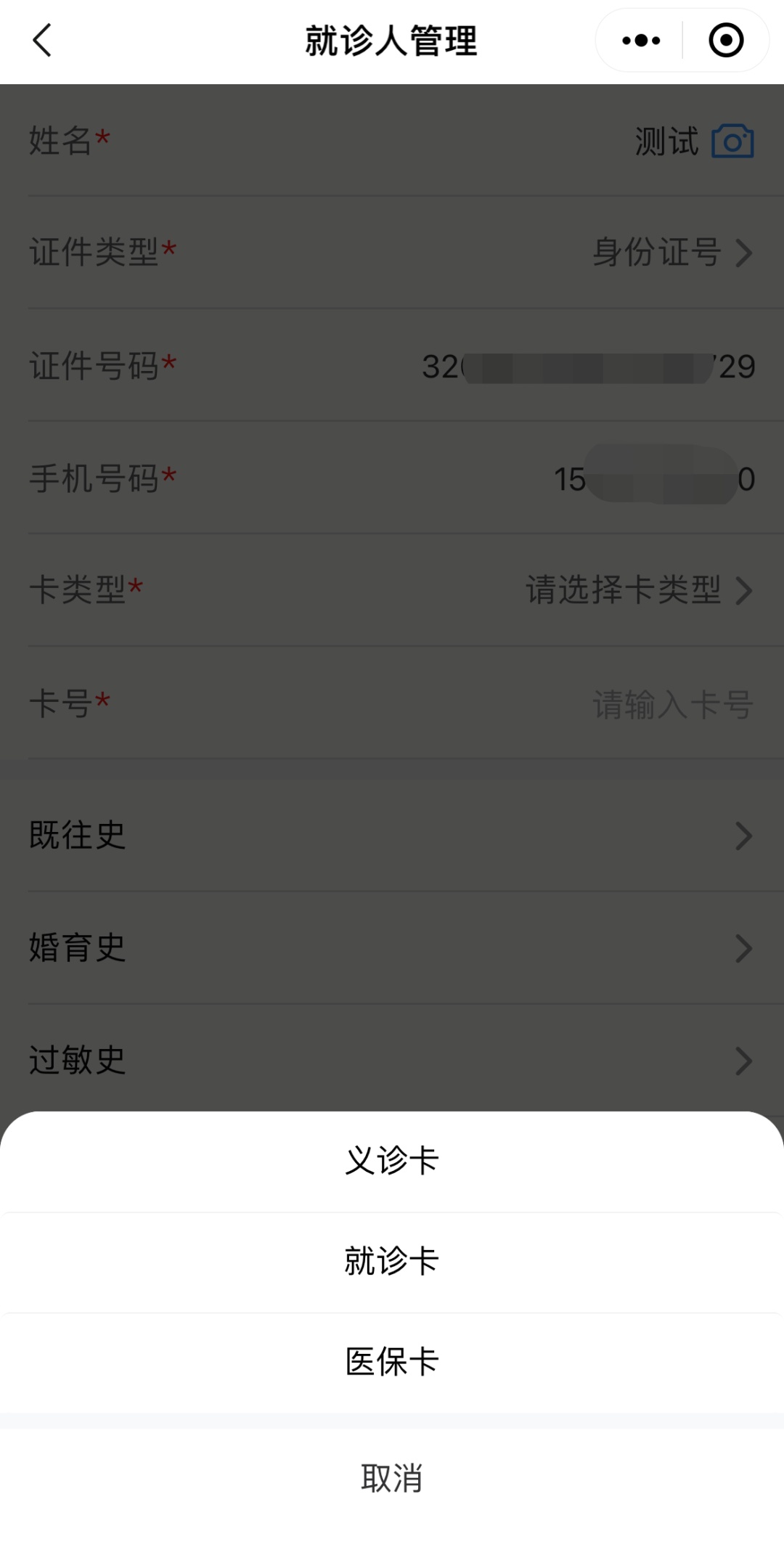 进入【个人中心】,选择“就诊人管理”确认就诊人信息后选择义诊卡进行绑定