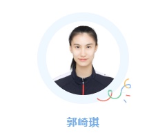 郭崎琪,2007年输送至市体操中心,与刘鑫同年输送至一线。2020年荣获全国艺术体操锦标赛集体全能第一名。在2020年全国艺术体操锦标赛上,郭崎琪以国家队主力队员的身份亮相。郭崎琪在此次赛后采访中表示:这次比赛中展现的两套项目的风格是敦煌和武侠,这是去年年底新编排的风格,在东京奥运会上也取得了不错的反响,这次在全运会上也有了一个完整的展示。今天,上海队的师妹们表现得很棒,希望她们继续努力,取得佳绩。