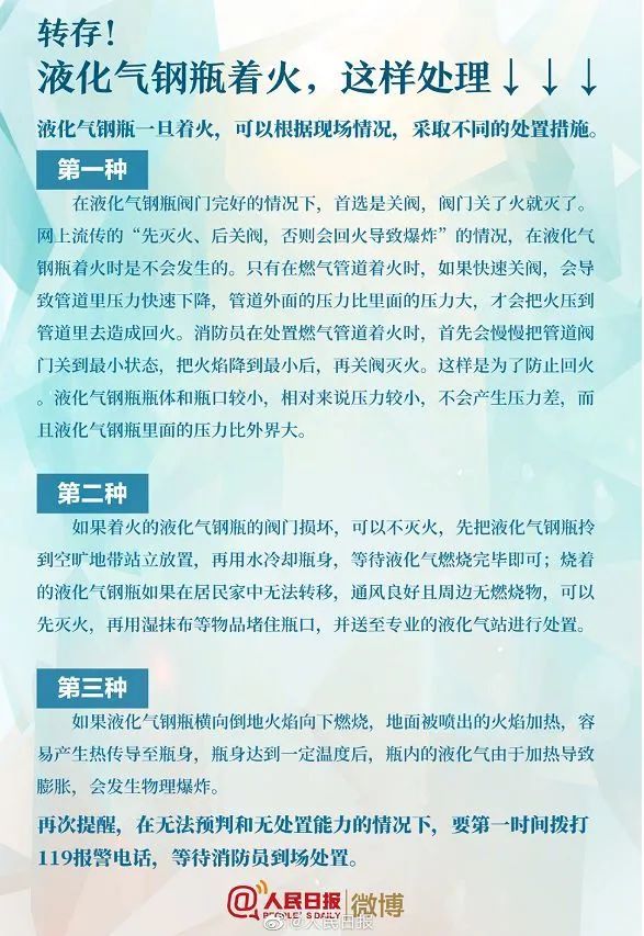 一旦遇到液化气罐着火,如果阀门完好,一定要先关闭阀门。 正确的处置措施