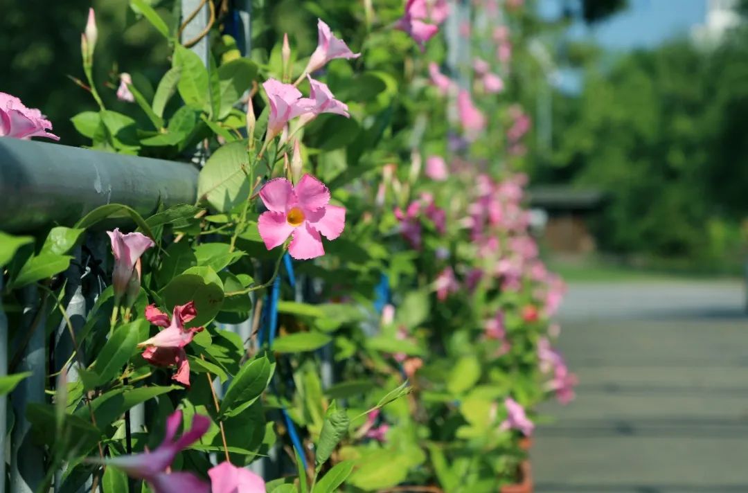 瑶华桥上,粉色的双腺藤如瀑布般装点着两侧,“伐要太灵”噢~