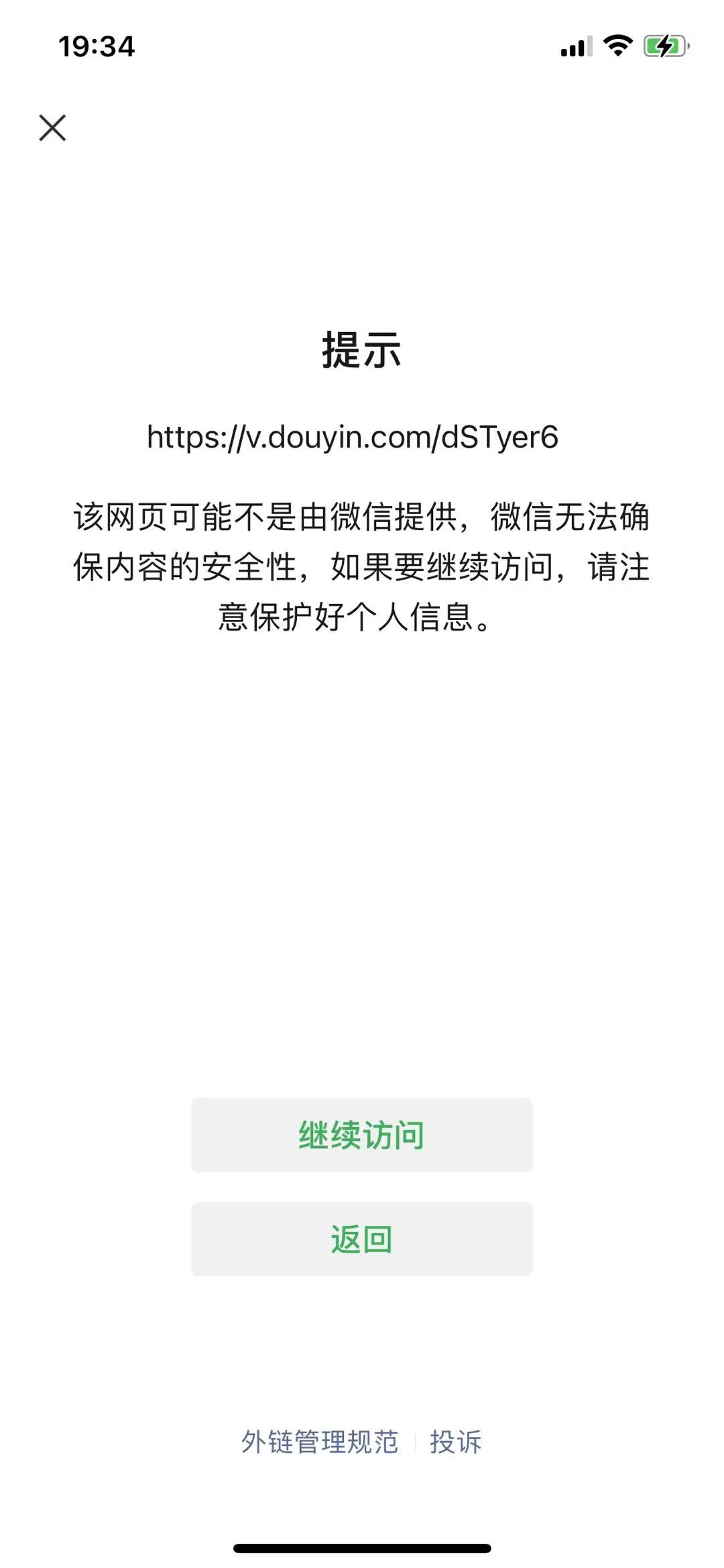 记者尝试将微信和抖音内容链接粘贴至淘宝对话框,点击链接后,只要经过一个中间提示页——“下面这个页面不受我们控制哦,请注意安全”,即可正常进入。