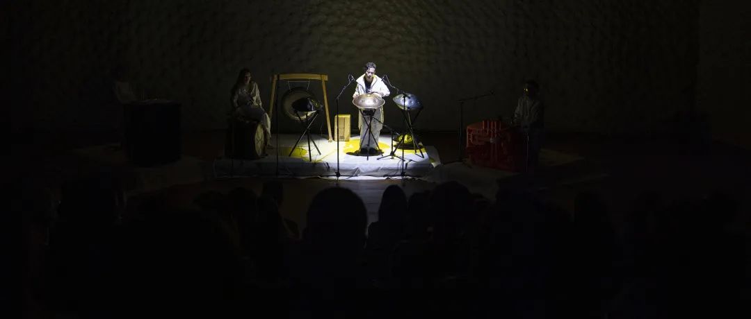 下午场,黄立氧与黄壬真盘坐在舞台中央,女声轻柔地引导观众进行简单的拉伸。铜锣奏响,音乐会开启。