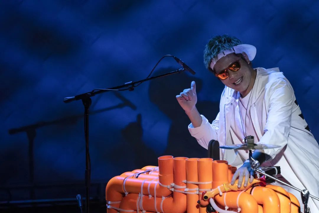 节奏猩人用丰富的打击乐器带来一场“动感音乐盛宴”。“水管布鲁斯” “水管disco”……伴随丰富的灯光变幻,与手碟、特雷门琴呼应,彻底点燃了全场的氛围。