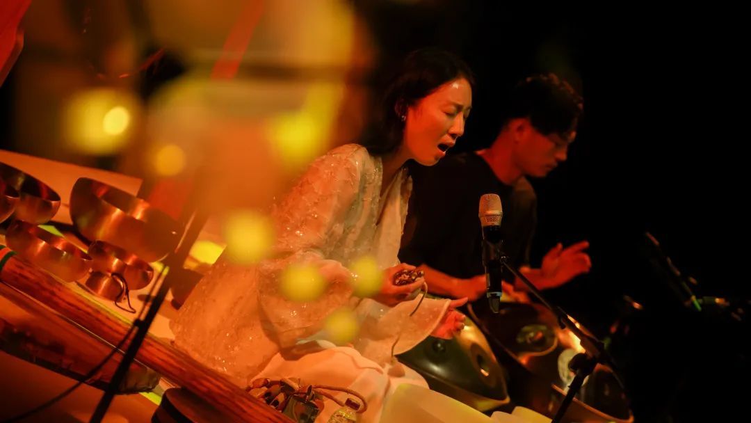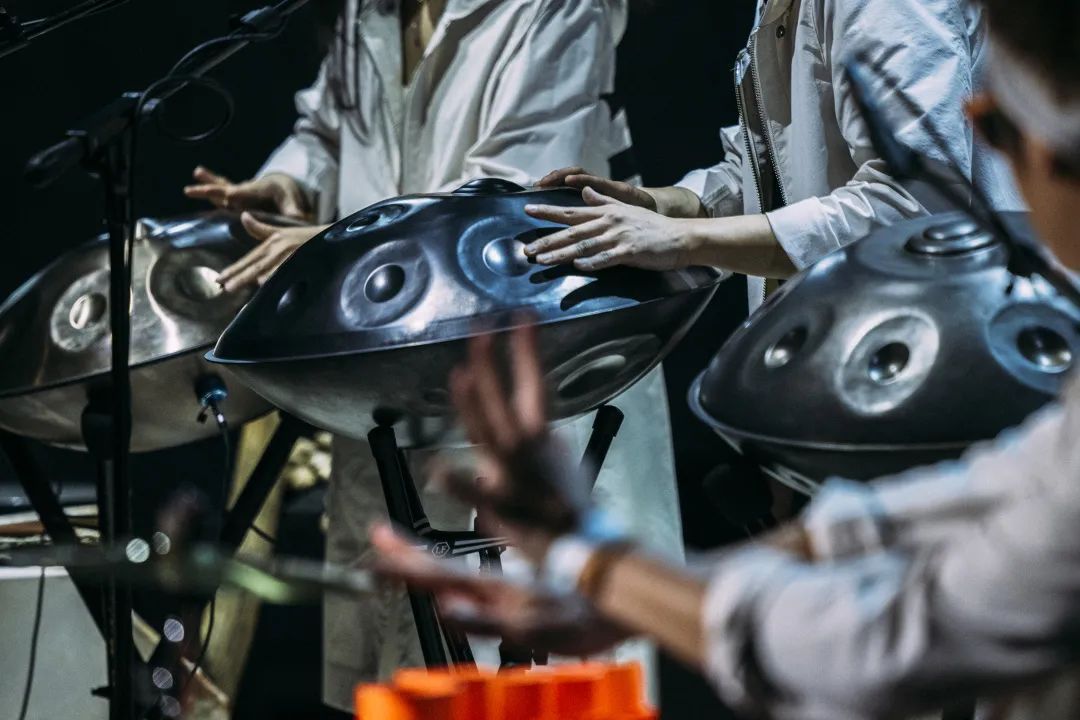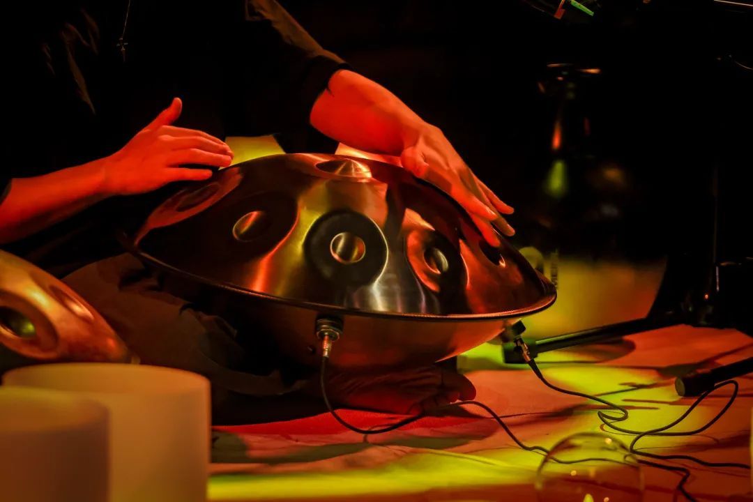 铜锣、颂钵、水晶钵、非洲雨棍是音乐疗愈中常见的打击乐器,而音乐会的主角乐器——手碟,用独具特色的声音磁场打开了观众们的内心。