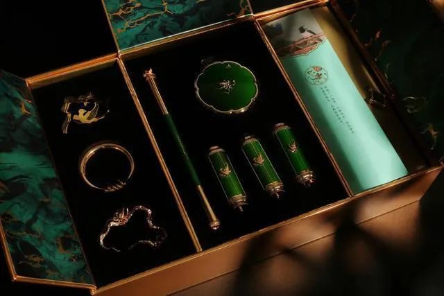 与故宫博物院合作,通过对铜镜、宫灯外形、宫柱造型的设计借鉴,打造出精美易携带的产品,并配以翡翠绿,提升产品颜值,让每一个细节均散发出浓郁的东方美。