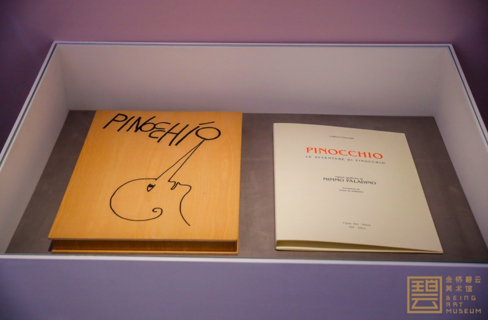而如何表现艺术家手作书的美,就成为此次“迷宫”展览的难点。王骥表示,书籍需要翻阅,才能与读者亲近,然而展览中无法让观众都能触摸到,所以只能尽可能地展现书的全貌。好在大部分的艺术家手作书是未经装订的,处于散页状态,因此展览团队就为14本书构建了14个场景,找到最适合这本书的阅读方式。例如,意大利艺术家帕拉迪诺的作品《匹诺曹》,每一页展开宽度都超过一米,而这又是一个童话故事,因此就在地上做了15个大展柜,高度很适合小朋友欣赏,也能让成年观众产生“拜读”的效果。
