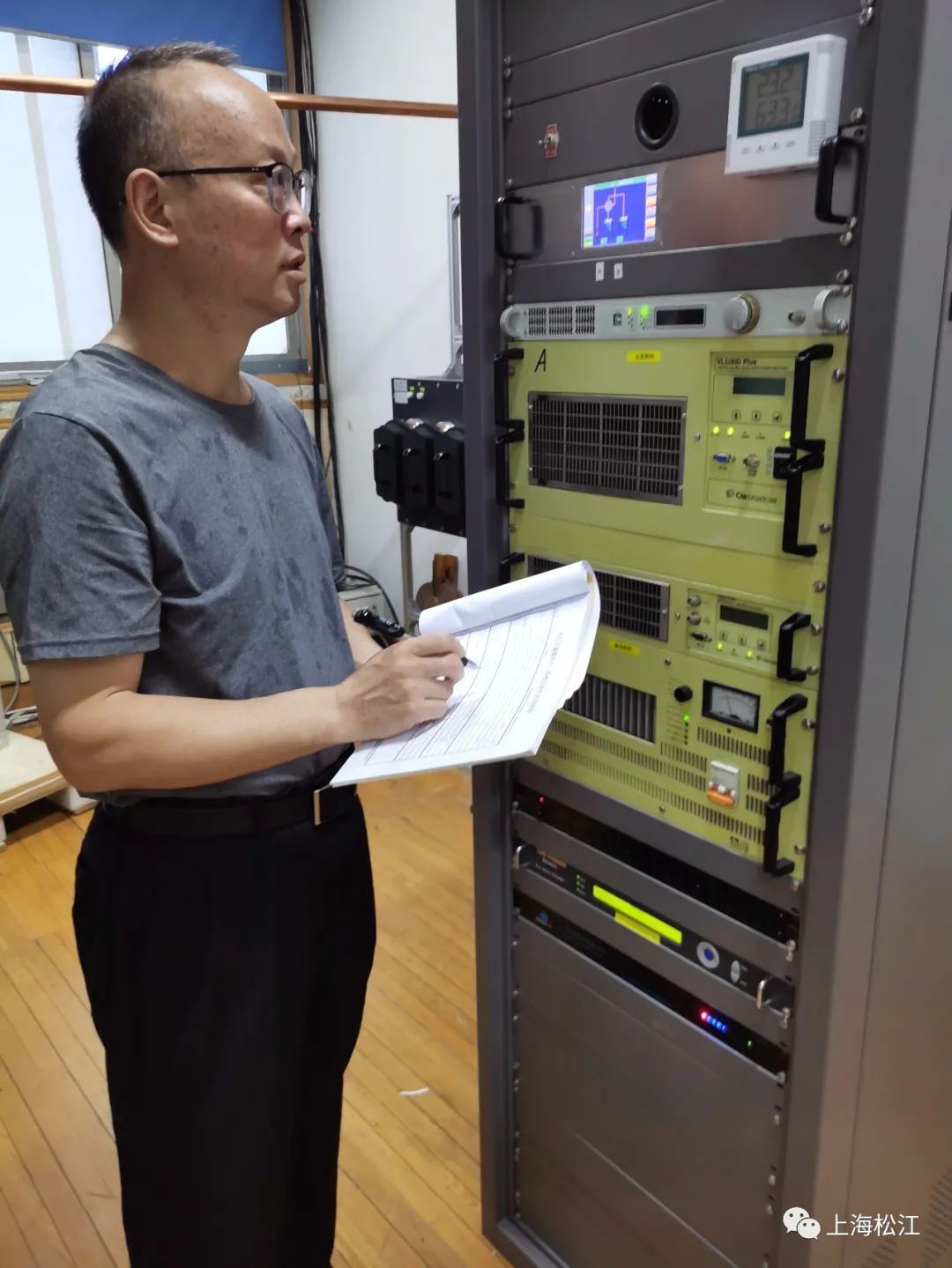 而地面的两层更多承担的是信号发射的作用。松江电视台筹建时的老同志寿菊明,在电视塔建成后负责电视塔维护工作,和技术部的同事们,几十年如一日稳稳守好 “底座”。这次的维修他也参与其中。
