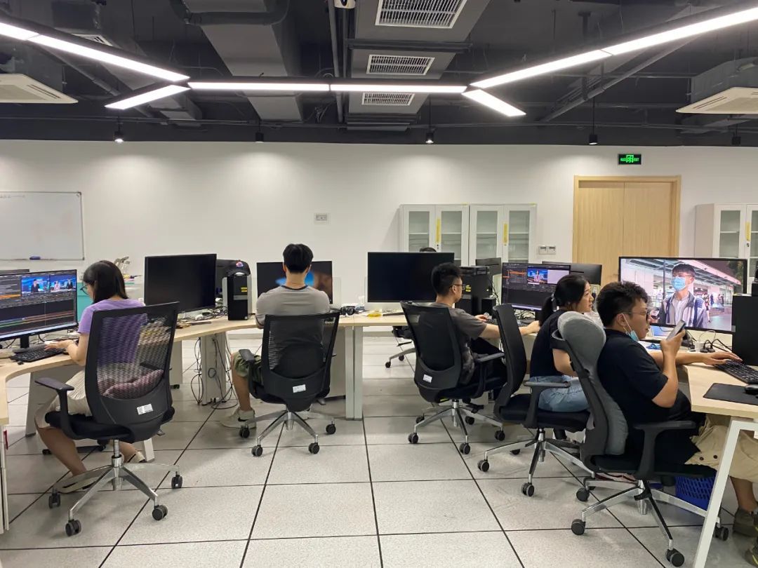 如今已经是视觉部负责人的叶伟,放下了摄像机,带着一帮年轻人,拿起了手机,抖音、视频号、微视成了他的“新战场”。他的身旁是一代代松江新闻人在台前幕后不断成长。