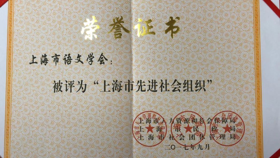 上海市语文学会荣获2017年度上海市先进社会组织