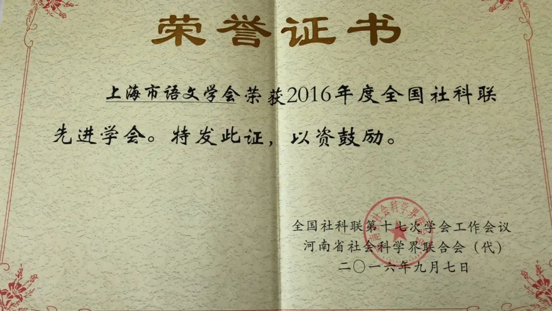 上海市语文学会荣获2016年度全国社科联先进学会