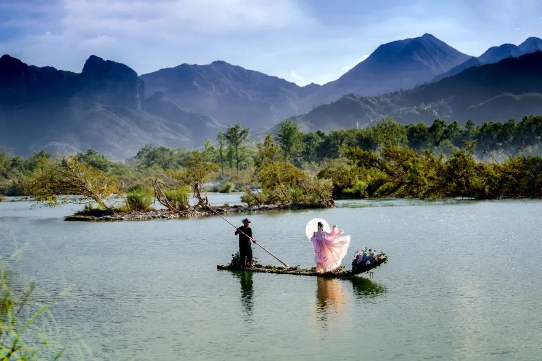 在这里,四季各有不同景可观,但要论一年中最美的季节,还要数秋天。此时的温州天气转凉,楠溪江畔却开始变得火热,一抹浓烈的红点亮了水面,旖旎的风光让人久看不厌。沧桑的古道、炊烟袅袅的村庄、如火般的枫叶,交织在一起,构成了一幅美轮美奂的山水彩绘。这个时候,应当乘上一艘竹筏,划向江心,看芦苇荡与枫叶林在秋风的指挥下,默契地摇摆着,水面泛起阵阵涟漪,倒影变得朦胧起来,人似乎也有了几分醉意。