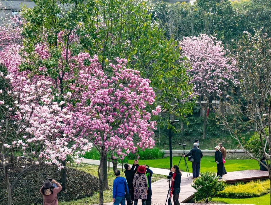 每年春天,南昌路与重庆南路路口的玉兰园绿地,玉兰挂满枝头,美轮美奂,吸引着大批喜爱玉兰的市民。