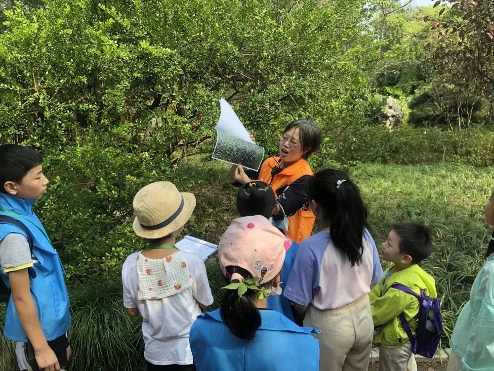 一路走在园内,大家还遇到了许多各不相同的其他植物。在导赏老师的带领下,大家一一认识了它们的名称,如乌桕、悬铃木、兰花三七等。