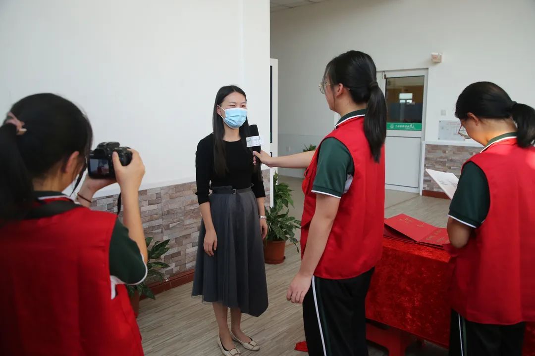 “我们是华亭学校青亭电视台的记者,请问您对课后服务有什么想法?”在课后服务的新闻课堂上,8年级的学生汪嘉仪和同学吴燃一起正在随机采访学校里的老师,请他们谈谈对新学期课后服务的想法和计划,之后会做成相关视频和节目在校园电视台、以及学校微信公众号、抖音号上播发。