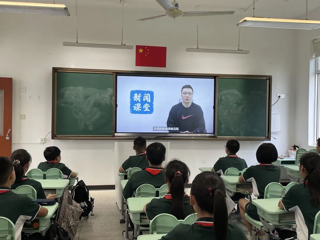 这样的采访场景,是华亭学校媒介素养课程的一个组成部分。每堂课一开始,学生们会先观看由东方卫视新闻主播于飞和团队制作的《新闻课堂》节目,主题包括红色“四史”、行业分析、媒介素养、大国崛起、大国关系等内容,之后再通过分享交流、提问互动、现场采访、活动拍摄等,学习制作新闻。