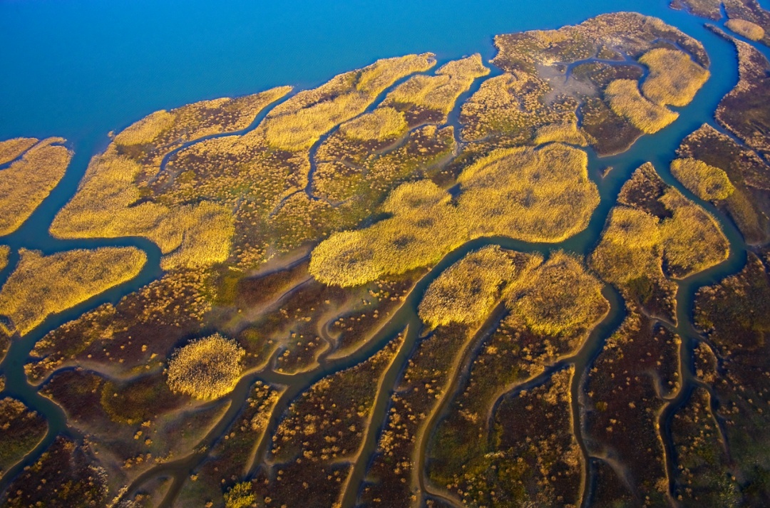 到入海口的湿地滩涂,