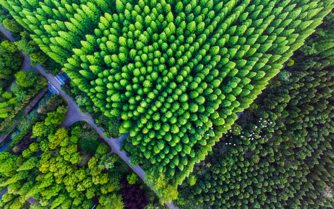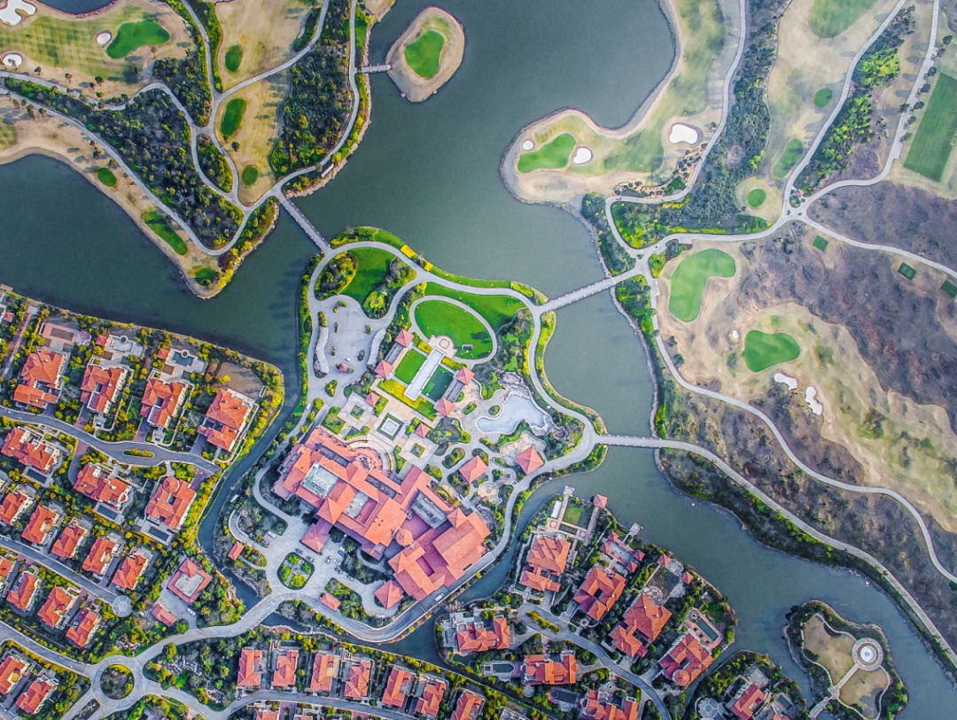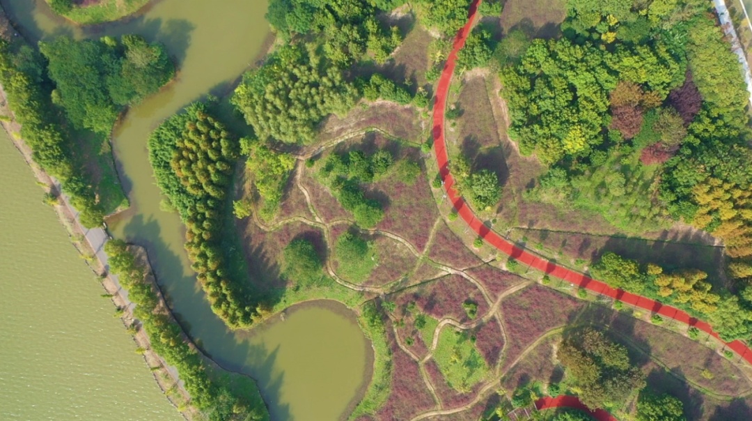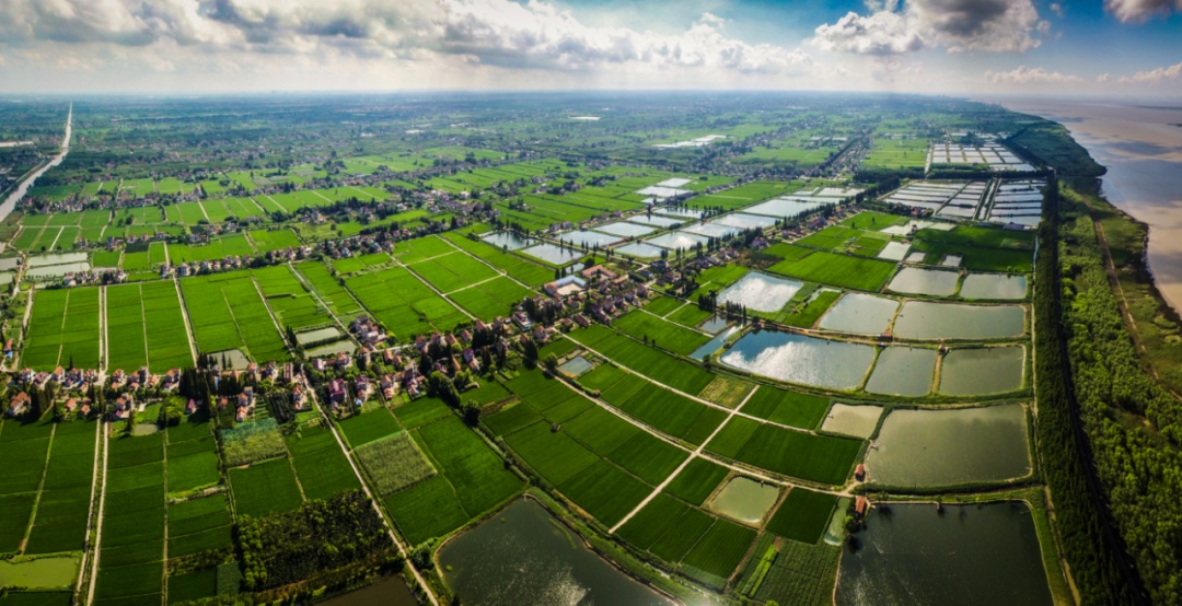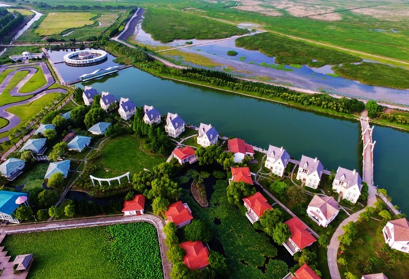 从高空俯瞰,到处被森林植被覆盖的崇明,一片葱郁翠绿;富有诗意的阡陌田园,绿树掩映下的乡村民宅,河流穿梭其中,形成了一派婉约秀气的江南景象。