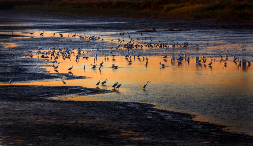 东滩鸟类国家级自然保护区,沼生植被繁茂,底栖动物丰富,是亚太地区候鸟迁徙极好的停歇地和驿站,也是候鸟的重要越冬地,是世界为数不多的野生鸟类集居、栖息地之一。