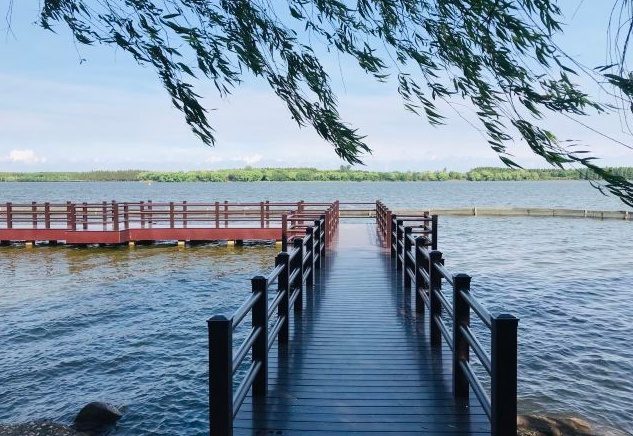 明珠湖是崇明最大的天然淡水湖泊,湖水清澈,环境幽雅,自然风光秀美。漫步在环湖林间小道中,虫鸣鸟语、蝴蝶翩翩、欧鸟翔集,能在这里呼吸到森林和海洋的气息,感受大自然之神奇。