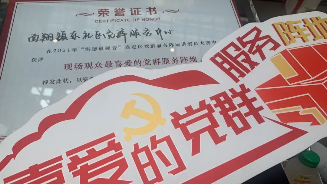 现场,观众和专业评审一起投票选出了“现场观众最喜爱的党群服务阵地”——南翔镇东社区党群服务中心!