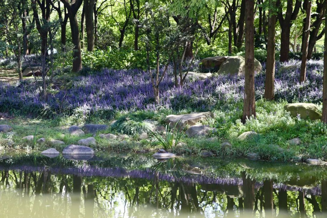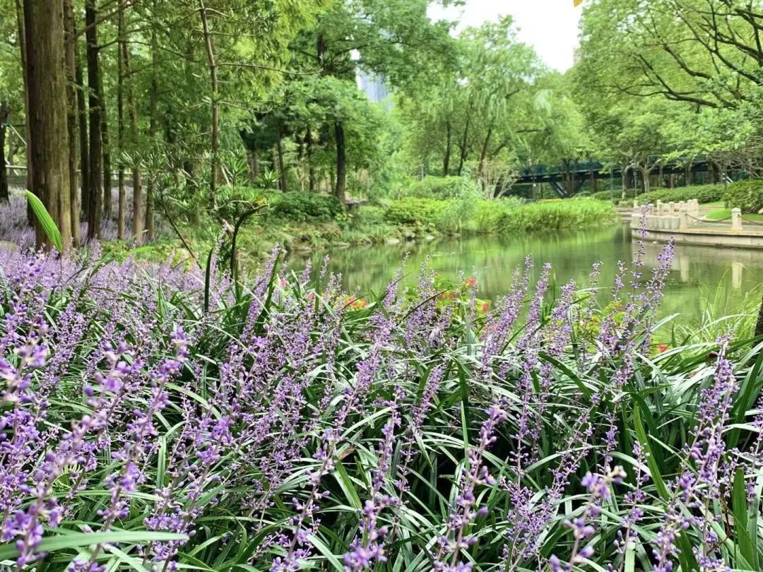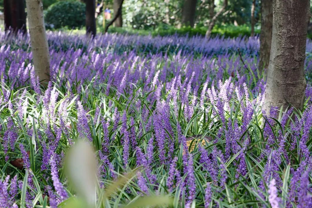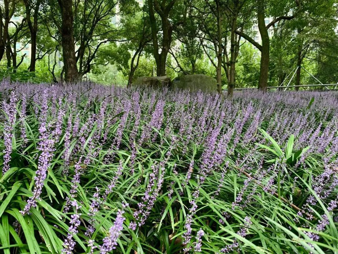 上海南站周边、老鹰绿地、天钥桥路、肇嘉浜路……徐汇各绿地的兰花三七开的正旺,淡紫色花朵随风摇曳,幽静而诗意,远远望去仿佛置身于薰衣草花田中。